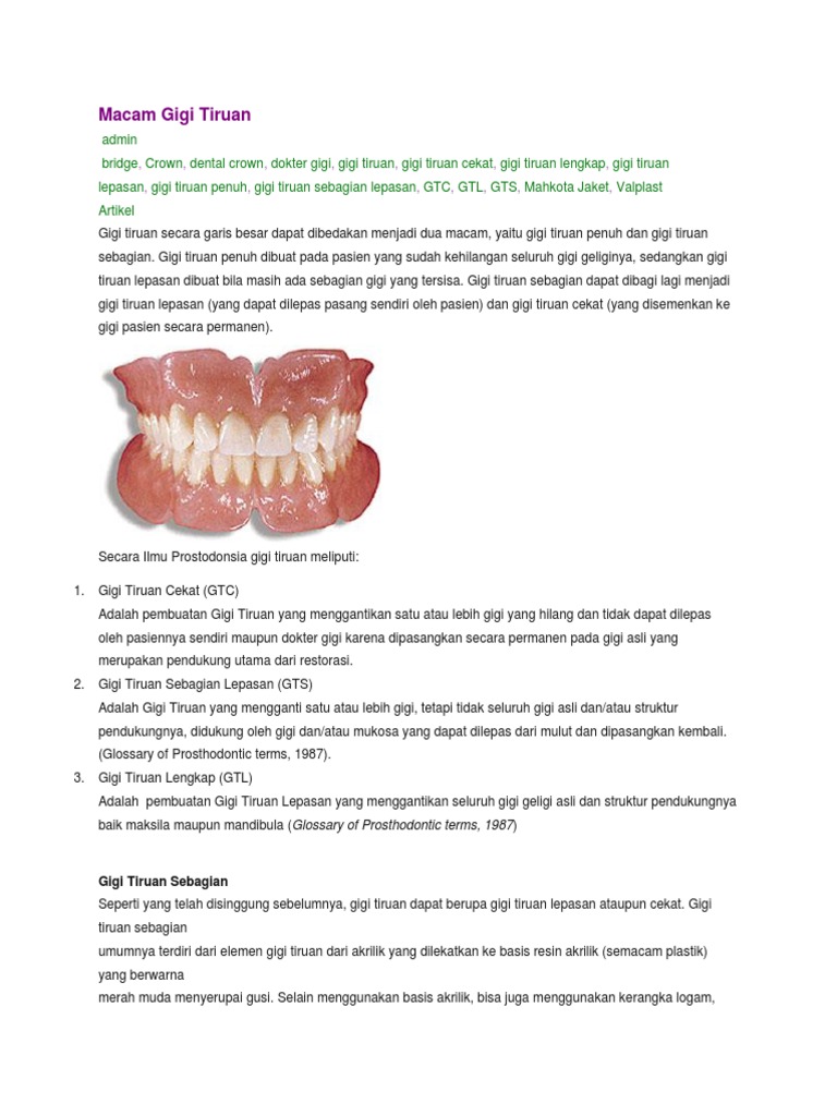 Komponen Gigi Tiruan Cekat Dan Tahap Pembuatan Pdf