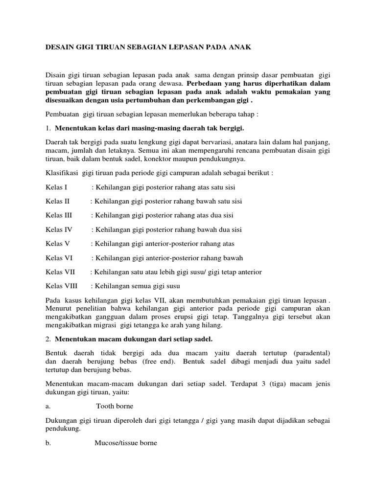 Desain Gigi Tiruan Sebagian Lepasan Pada Anak Pdf